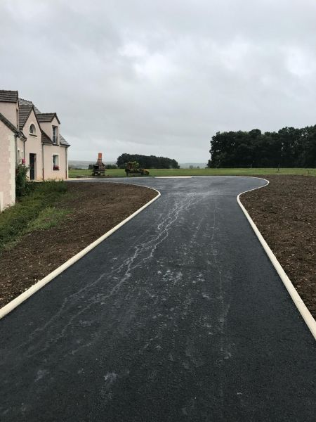 Finition de la cour : Enrobé mécanique noir, appliqué au finisseur et manuellement pour un résultat impeccable
